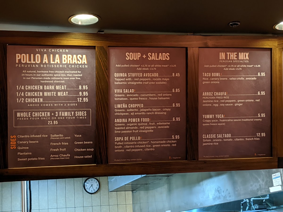 Introducing the menu at Viva Chicken - Charlotte, located at 12206 Copper Way, Charlotte, NC, promises an exciting culinary experience steeped in authentic Peruvian flavor. Their signature Peruvian Rotisserie Chicken showcases all-natural, hormone-free chicken marinated in a special spice blend from Chef Bruno's family recipe. This succulent quarter or half chicken is perfectly roasted over live charcoal, creating a mouthwatering delight for just US$10.95.
